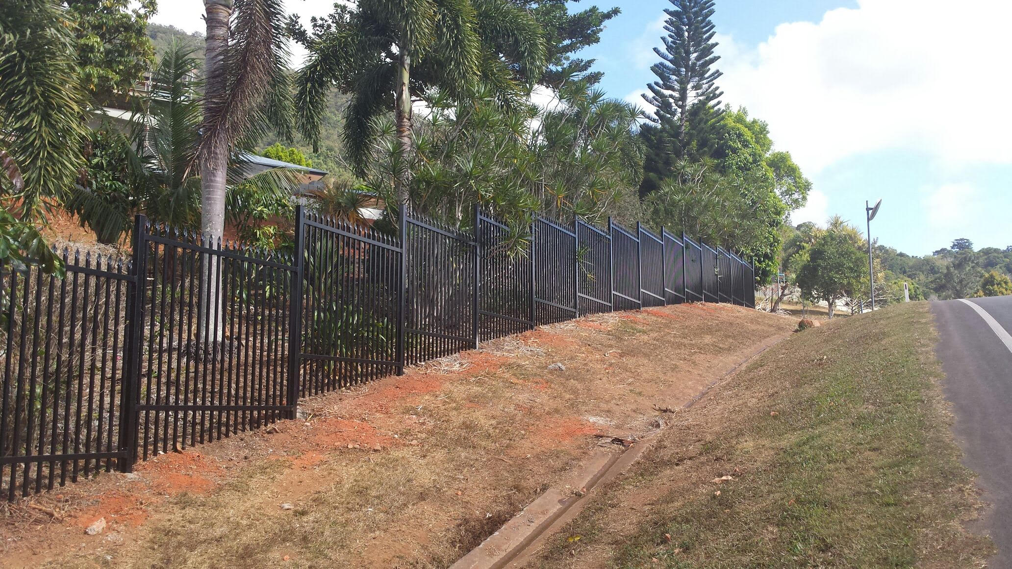 Spear top fencing down slope